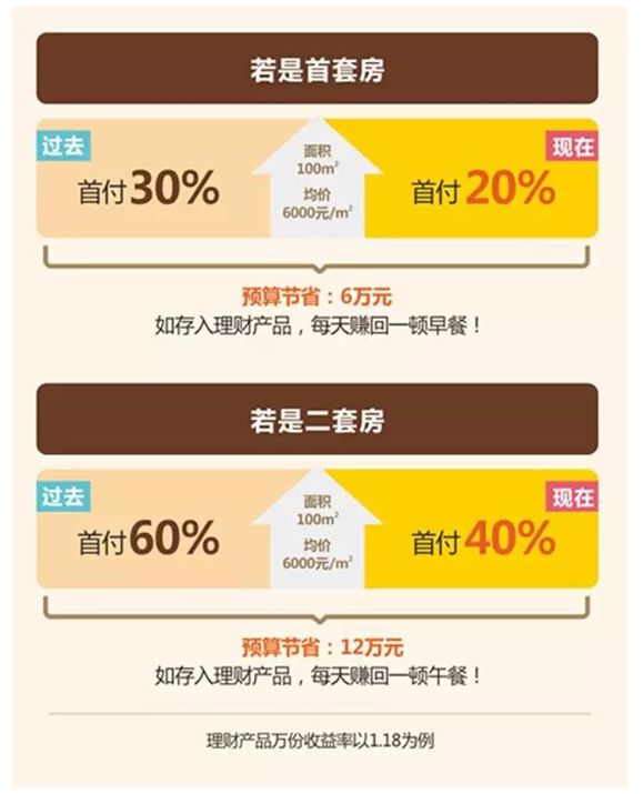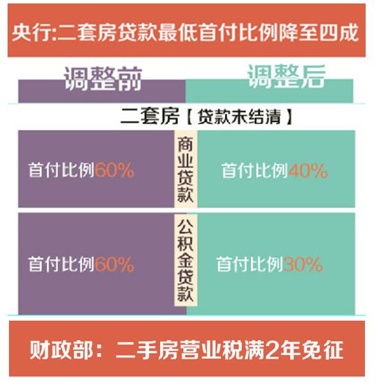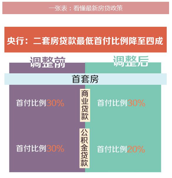 央行、住建部、銀監(jiān)會聯(lián)合下發(fā)通知,對擁有一套住房且相應(yīng)購房貸款未結(jié)清的居民家庭購二套房,最低首付款比例調(diào)整為不低于40%。 同時(shí),繳存職工家庭使用住房公積金委托貸款購買首套普通自住房,最低首付比例下調(diào)為20%;擁有一套住房并已結(jié)清貸款的家庭,再次申請住房公積金購房,最低首付比例為30%。